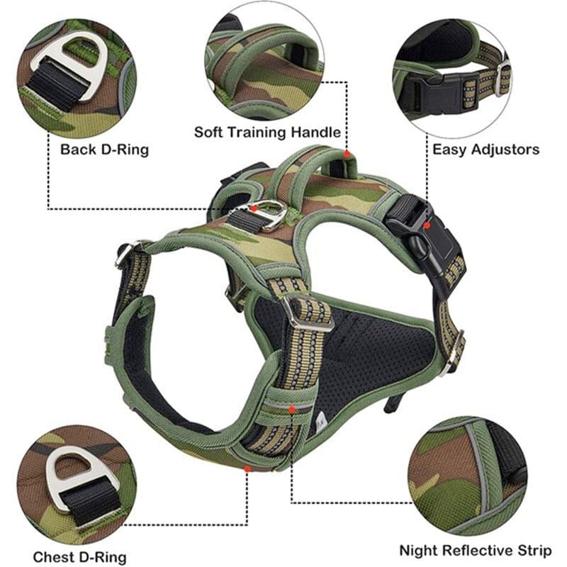 This Dog Harness Adjustable Large & Medium is a must-have for all dog owners. It is made of 1000D Nylon, making it comfortable, lightweight, and durable. It also features an elastic band, night reflective strip, mesh, and breathable material. The easy control handle and breakaway, quick release feature make it perfect for all seasons training control.