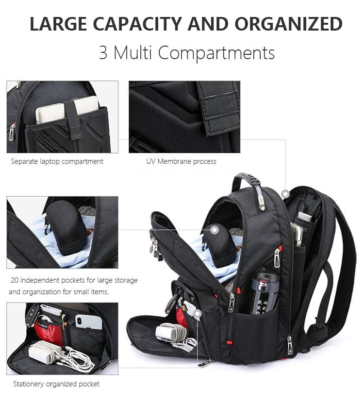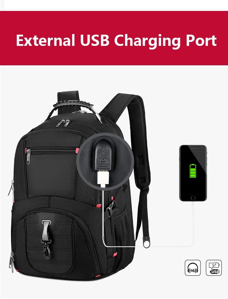 Our Durable Laptop Backpack offers the perfect blend of luxury and practicality. Featuring a Swiss-Multifunctional design with a USB charging port, it is sure to become an indispensable travel companion. The generous 45L capacity and interior storage pockets make organising your necessities an effortless task, while the water-resistant construction ensures longevity and quality. For a blend of style and functionality, look no further.