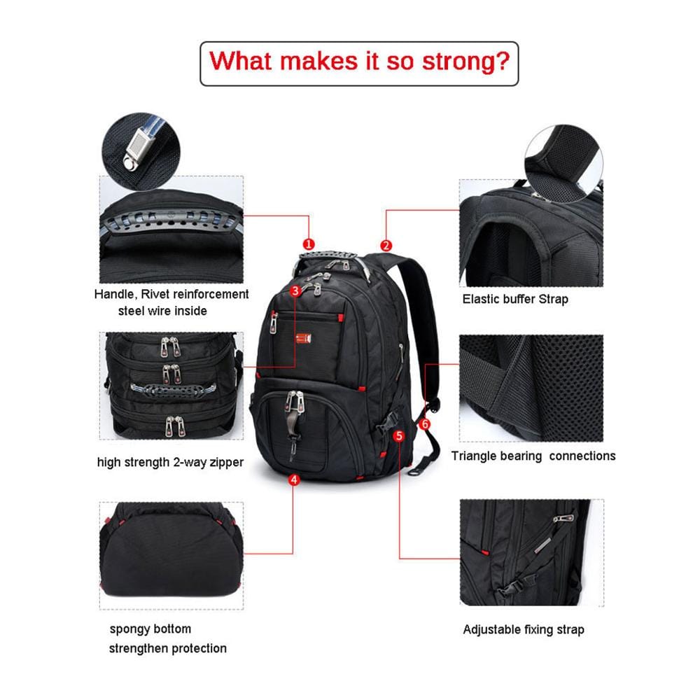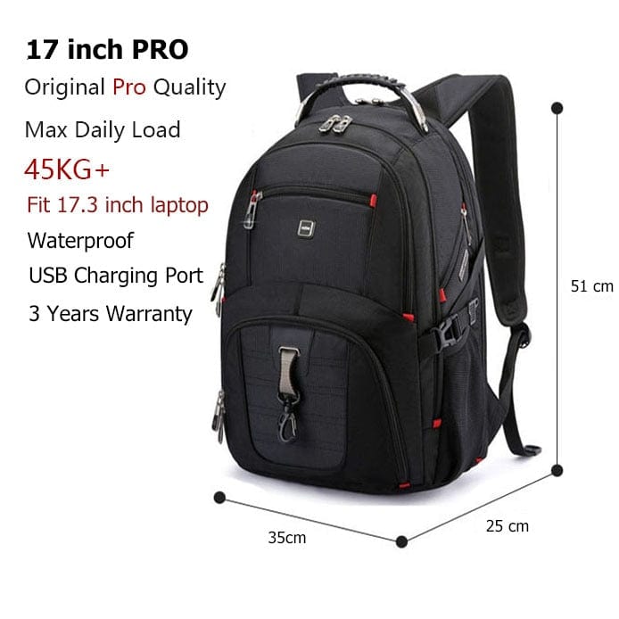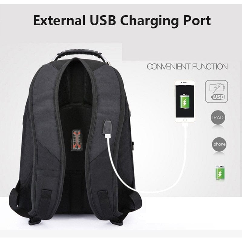 Swiss-Multifunctional Durable Laptop Backpack USB Charging Port