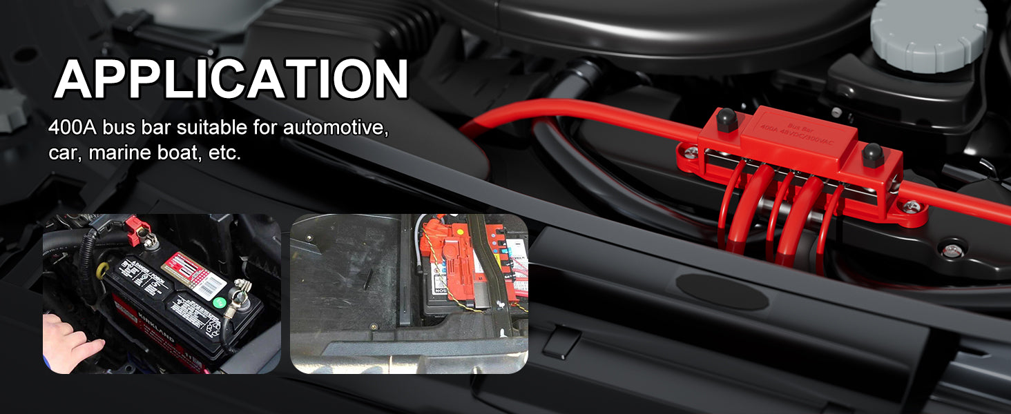 Application: Using a pair of black and red bus bar for wire management and wiring helps maintain a neat and orderly circuit, thereby reducing the risk of short circuits and overheating. This 400A bus bar is suitable for automotive, car, marine boats,etc