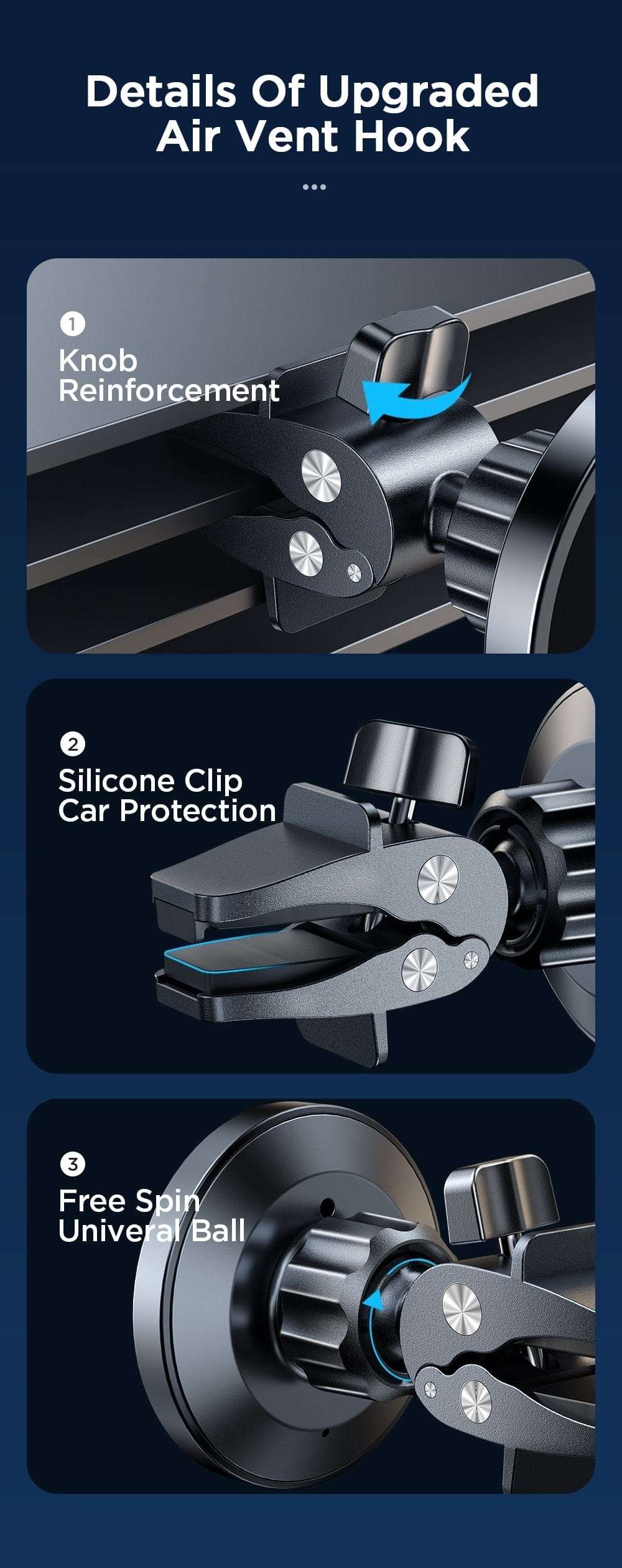 What sets this product apart is its versatility. It can be installed on an air vent mount, dashboard, or any smooth surface, providing you with the perfect view while keeping your hands on the wheel. This is not just a phone holder, but a powerful wireless charger with an output power of 5W/7.5W/10W/15W MAX.