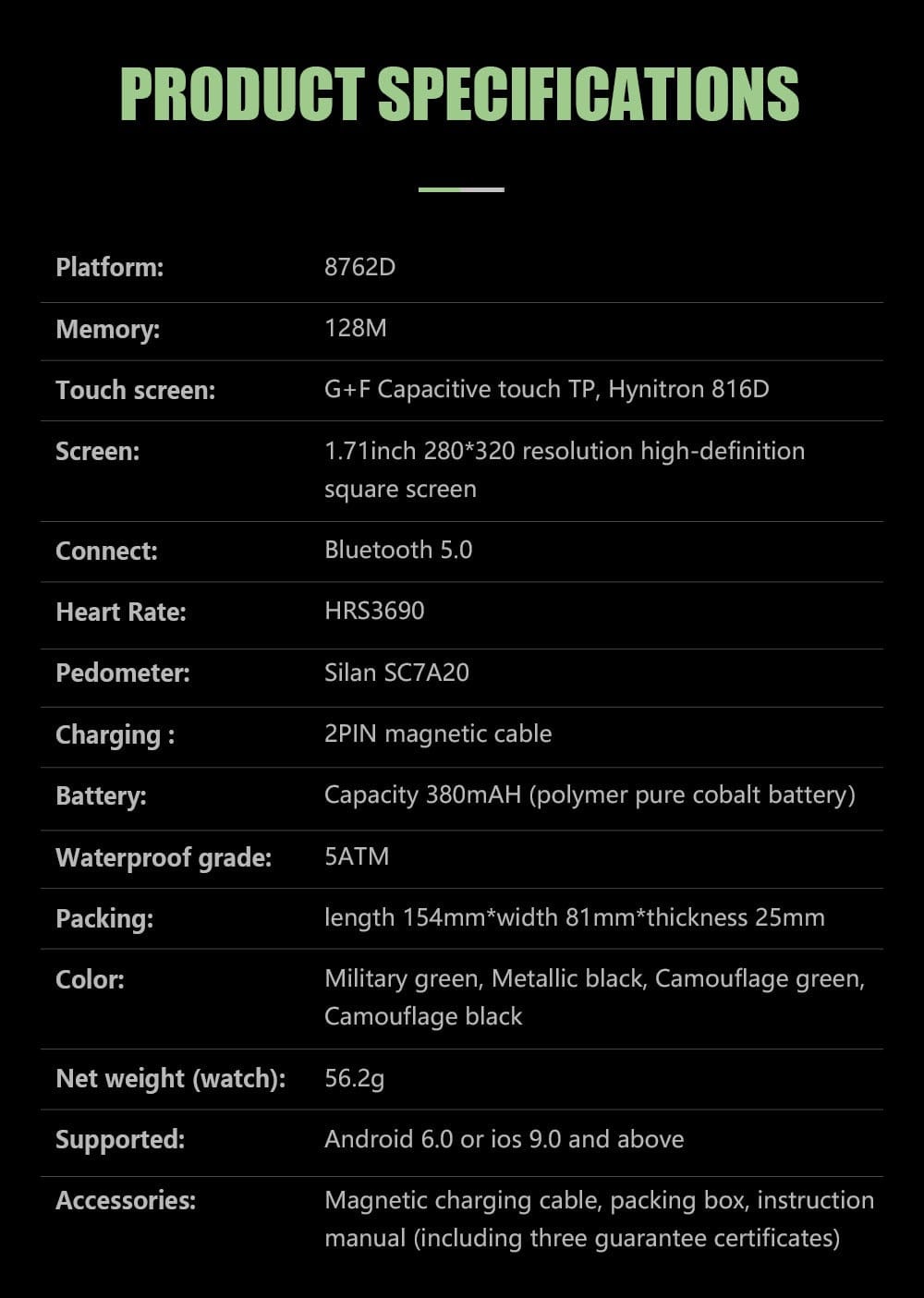 GREAT COMPATIBILITY & AFTER-SALES SERVICE - EIGIIS military smart watch for men is compatible with iPhone, Samsung and other android phones, supports system Android 6.0, iOS 9.0, and Bluetooth 5.0 and above. Not only that, EIGIIS provides 12 months money-back or free replacement. Any questions about the product, pls click on Pakrys next to the shopping cart to contact us. Our professional service team will respond you and provide you the best solution within 24 hours during working days.