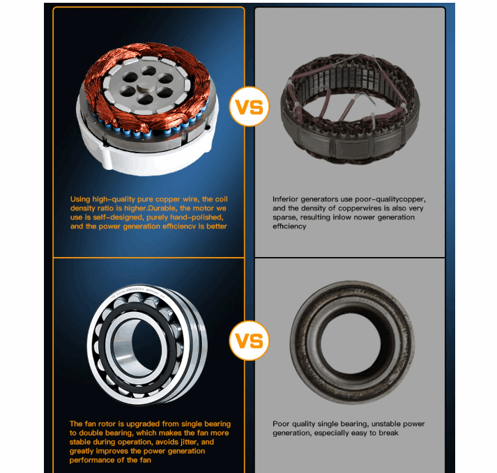Patented permanent magnet ac generator with special stator, effectively reduce torque, well match the wind wheel and generator, and ensure the performance of whole system.