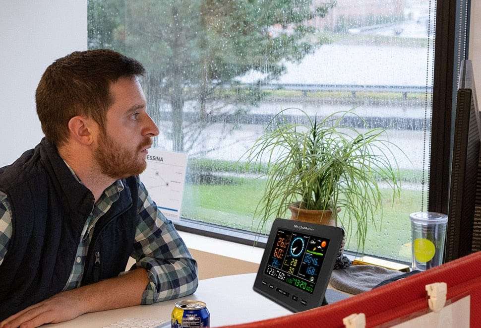 Experience the comfort of your personal weather station. The weather station measures indoor temperature and humidity, outside temperature and humidity, wind speed and direction.Â