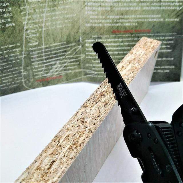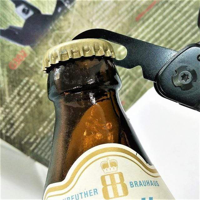 Eeverything you need at your fingertips. From a can/bottle opener, fine edge blade, serrated blade for cutting cord and wood, bit reamer, flat screwdriver to scissors, this tool has got you covered. Get yours today!
