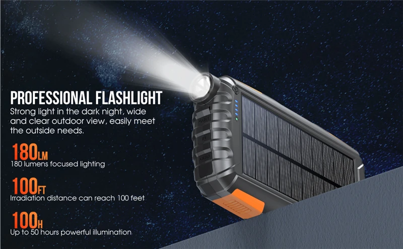 Solar Power Bank 42800mAh Waterproof Portable Solar Charger Powerbank External Battery Pack Power Bank with LED Camping Light