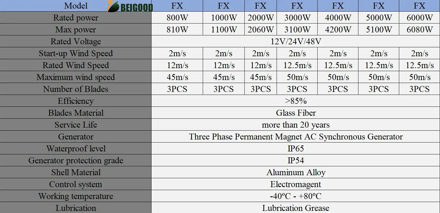 The BEIGOOD FX series vertical axis maglev wind turbines offer reliable wind power generation with models ranging from  1Kw, 3Kw & 6Kw.Â