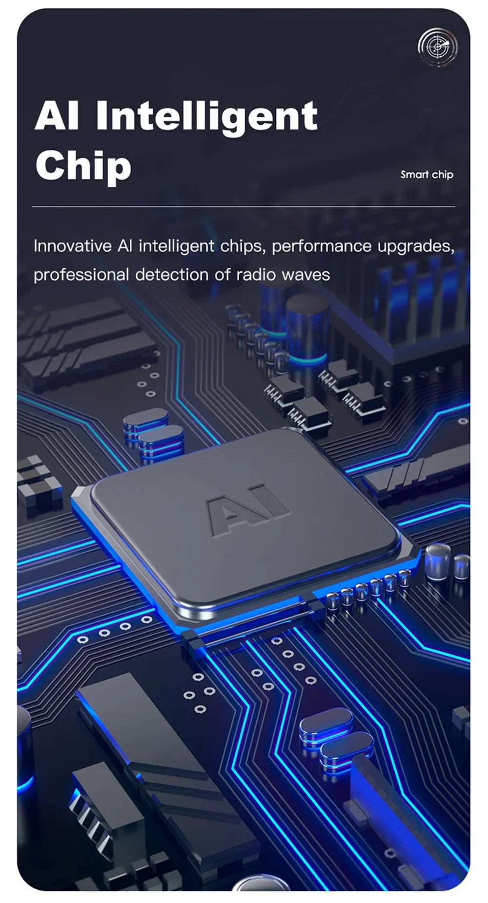Professional Anti-spy Detector with advanced AI chips, it's easy and quick to detect wireless hidden cameras, VHF/UHF transmitters, GSM/3G/4G bugs, GSM/3G/4G GPS tracker, wireless signal source and stronger magnetic field signal.