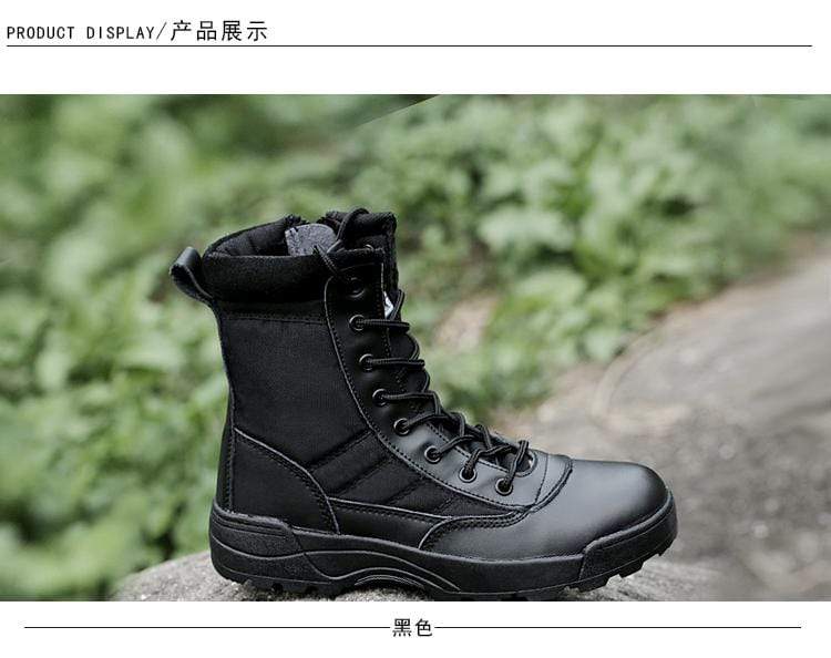 These Mens Tactical Boots are made from a breathable combination of leather and mesh for superior ankle support and comfort. Ideal for the outdoors, they also provide the perfect uniform for police and security personnel. The canvas upper material and round toe design offer extra durability and a snug fit.