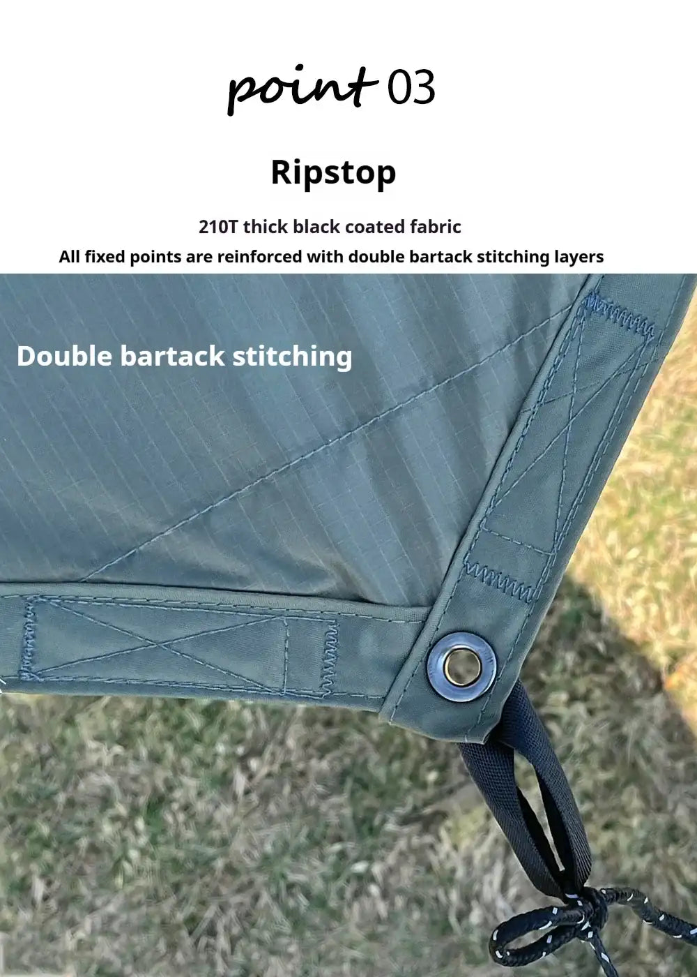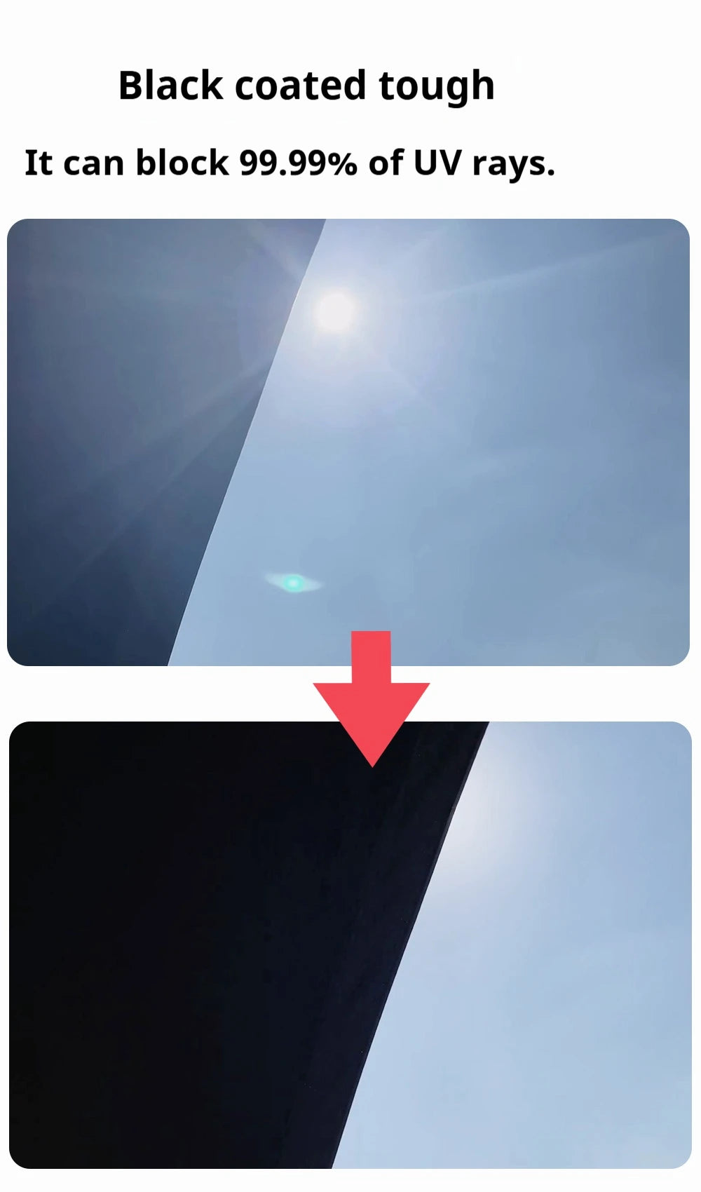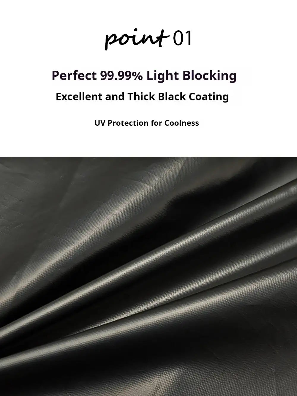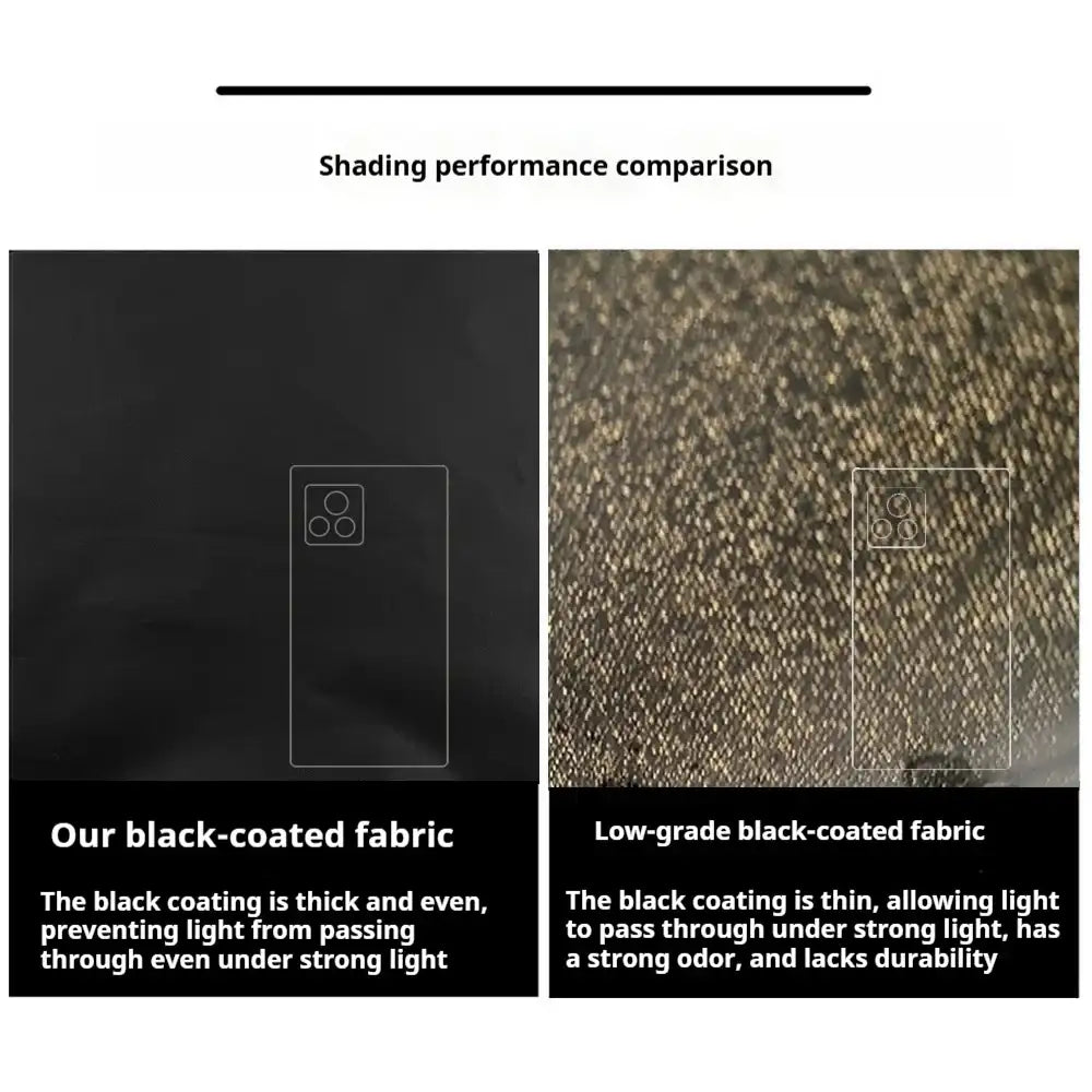 Blackout Tarp: This black coated flysheet offers the best shading effect with 99.99% UV blocking rate.